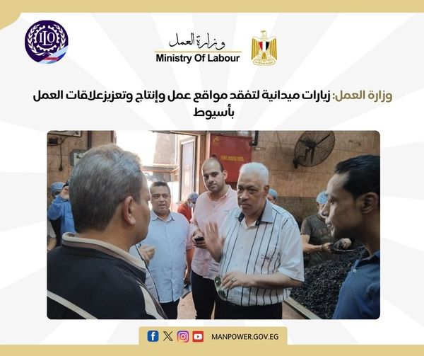 وزارة العمل تتفقد مواقع عمل وإنتاج وتعزيز علاقات العمل بأسيوط