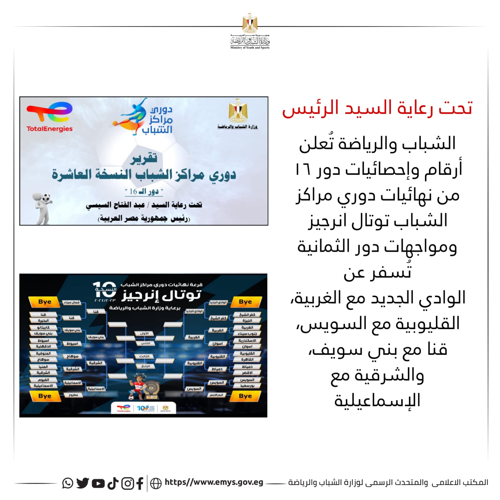 إعلان أرقام وإحصائيات دور الـ 16 من نهائيات دوري مراكز الشباب