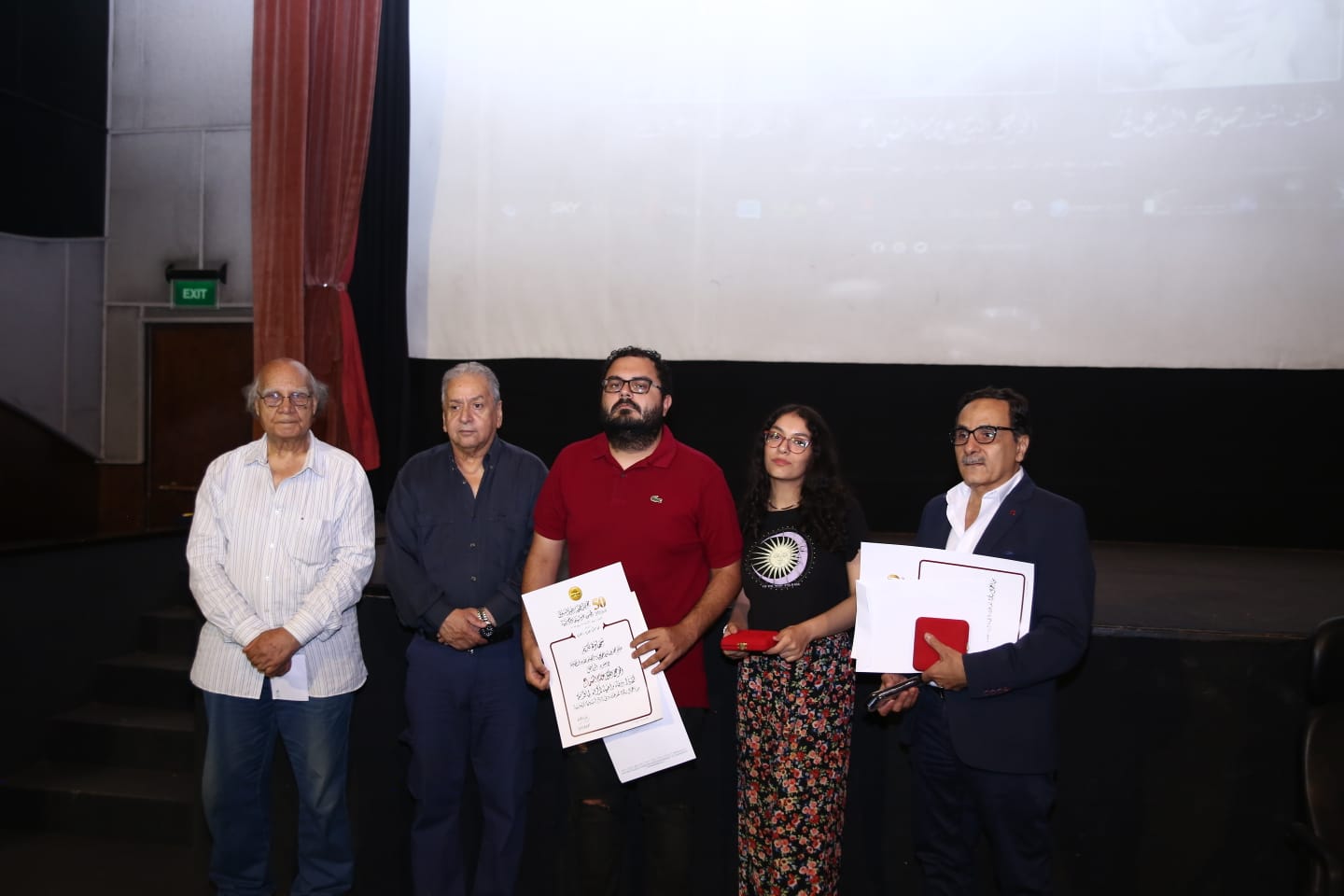وسلم عمر عبدالعزيز شهادات من المهن السينمائية تحمل أسماء الراحلين، وتسلم أحمد الشماع شهادة والده، وشهادة صلاح السعدني تسلمها عمر عبدالعزيز، وشهادة نادر عدلي تسلمها سيد محمود، ثم قام محمود عبدالسميع بتسليم شهادات تقدير بأسماء الثلاثة من جمعية الفيلم، قائلا "الراحلون ربطتهم علاقة كبيرة بجمعية الفيلم وبمهرجان جمعية الفيلم وبالسينما المصرية بشكل عام، صلاح السعدني حصل على جوائز من المهرجان وتم تكريمه في حياته، وكنا في ذلك الوقت في سينما كايرو بوسط البلد، وألقى كلمة هائلة عن مهرجان جميعة الفيلم والجمعية ونشاطنا، بشكل أخوي وعائلي، ونادر عدلي كان عضوا في لجان التحكيم لسنوات ومن أهم من كتبوا عن المهرجان طوال حياته، أما عصام الشماع فليس هناك دورة من دورات المهرجانات وقت إنتاجه لأعمال لم يشارك فيها، لهم علاقة كبيرة جدا بمجال السينما وبهذا المهرجان بشكل خاص".