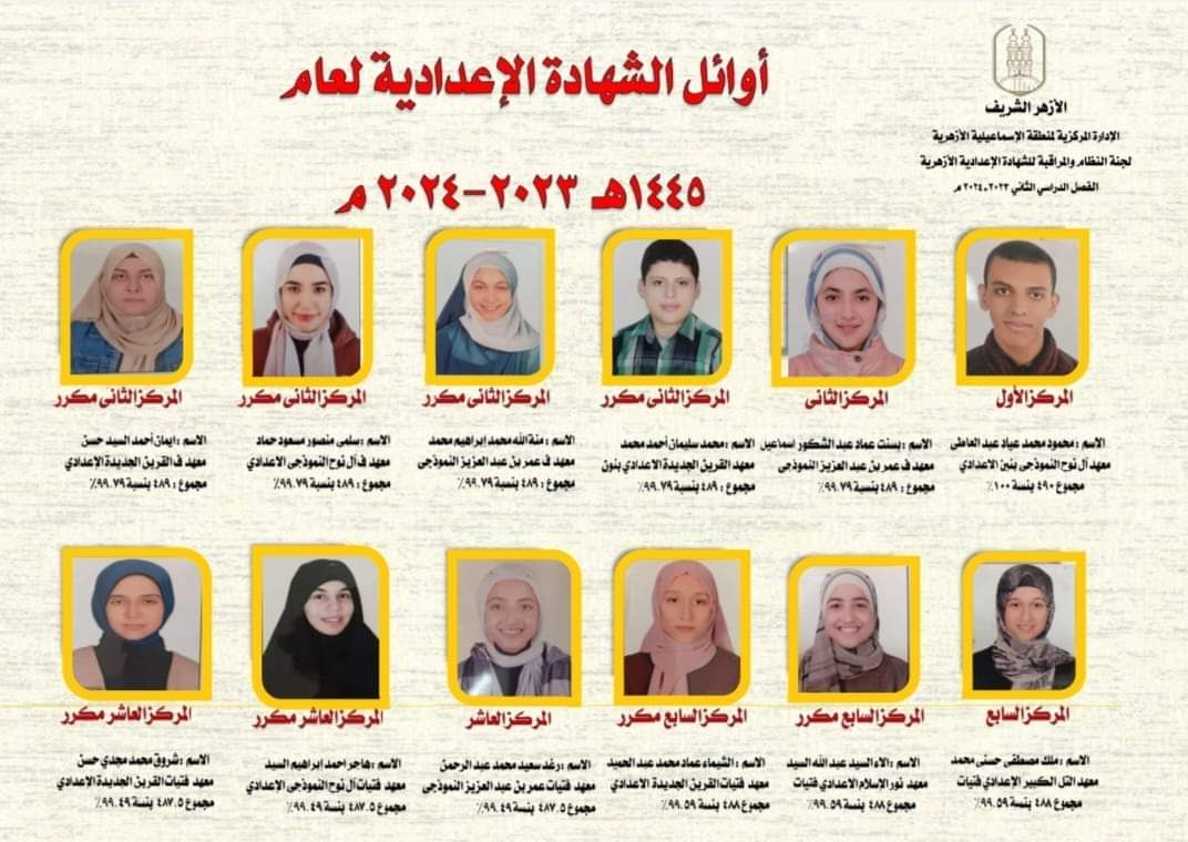 الفتيات يحصدن المراكز الأولى في الإعدادية الأزهرية بالإسماعيلية