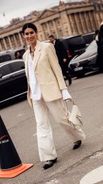 - يمكنك أن تعتمدي موضة الـ Ton Sur Ton أي أن تختاري طقماً أو فستاناً باللون البيج وتنسيق فوقه سترة بليزر كلاسيكية، اذ ستظهرين بأسلوب أنيق ومميز.
