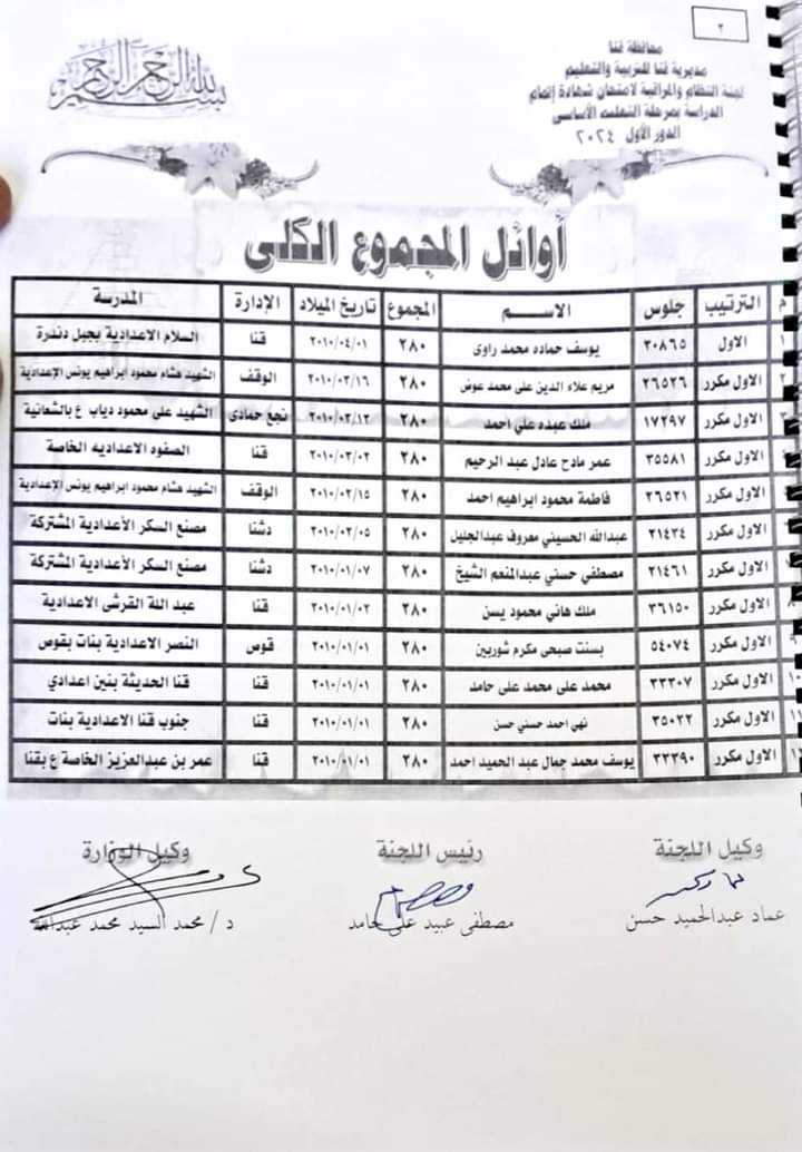 وقال محافظ قنا أن عدد طلاب الشهادة الإعدادية بلغ هذا العام 52848 طالب وطالبة حضر منهم 52230 وحقق النجاح 46154 طالبا بنسبة نجاح بلغت 88.37%، بينما بلغ عدد طلاب الشهادة الإعدادية المهنية 806 طالبا ، وعدد من تقدموا منهم لأداء الامتحانات 785 طالب وحقق النجاح 712 طالب بنسبة نجاح بلغت 88.3%، بينما بلغ عدد طلاب الشهادة الإعدادية للصم وضعاف السمع 35 طالبا وطالبة وعدد من تقدموا منهم لأداء الامتحانات 35 وعدد من حققوا النجاح 32 طالبا وطالبة بنسبة نجاح بلغت 91.4% ، بينما بلغ عدد طلاب الشهادة الاعدادية من المكفوفين 8 طلاب وعدد من حققوا النجاح 8 طلاب بنسبة نجاح بلغت 100%, بينما بلغت عدد طلاب الشهادة الاعدادية مرحله التلمذة الصناعية بمدارس التربية الفكرية 69 طالب وطالبة وعدد من حققوا النجاح 65 طالبا بنسبة نجاح بلغت 94.2%.