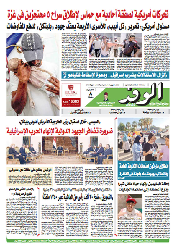 تنشر جريدة الوفد في عددها الصادر، غدًا الثلاثاء، الكثير من الموضوعات والتقارير الإخبارية المهمة، أبرزها: "تحركات أمريكية لصفقة أحادية مع حماس لإطلاق سراح 5 محتجزين في غزة".