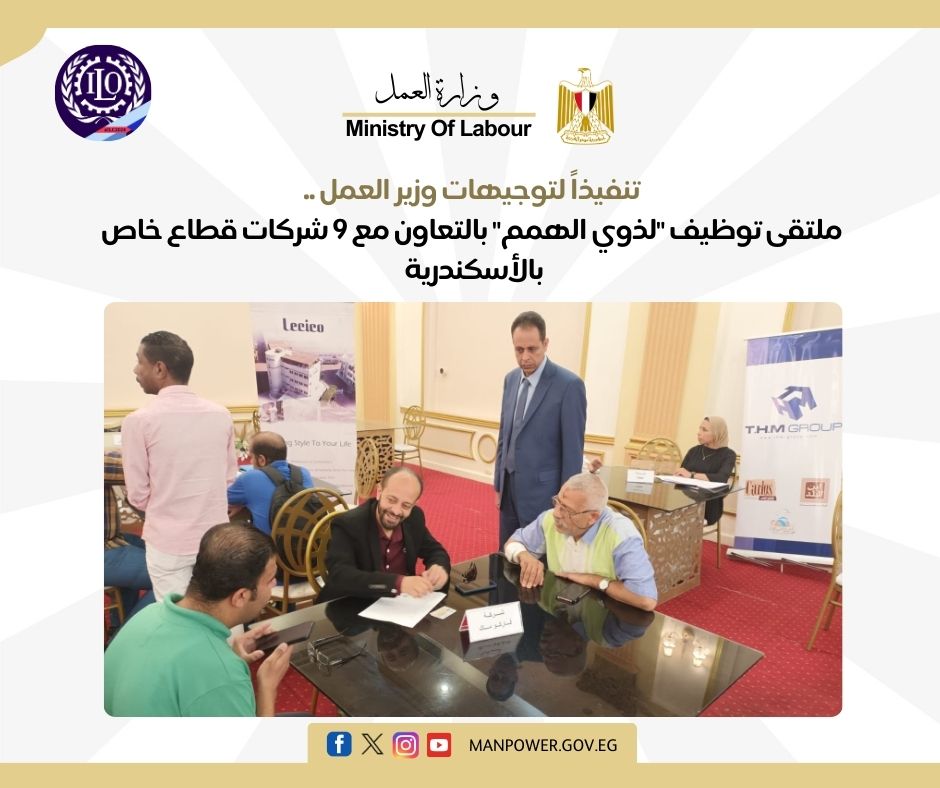 نظمت مديرية العمل بمحافظة الإسكندرية، ملتقى التوظيف لذوي الهمم ، يوفر 169 فرصة عمل ، بقاعة سيستا بمحرم بك ، وذلك للشباب من الجنسين بالتعاون والمشاركة مع  9 شركات من القطاع الخاص والاستثماري.