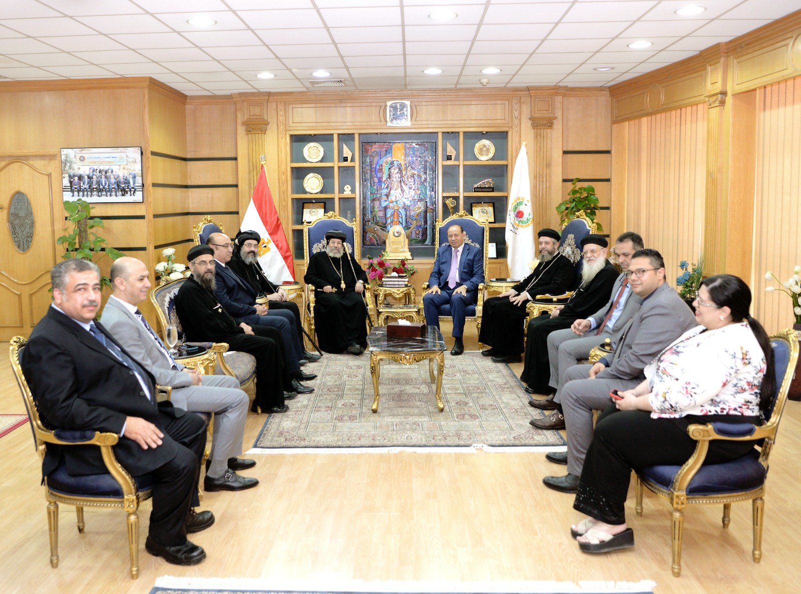 رئيس جامعة المنصورة يستقبل الأنبا أكسيوس للتهنئة بعيد الأضحى المبارك