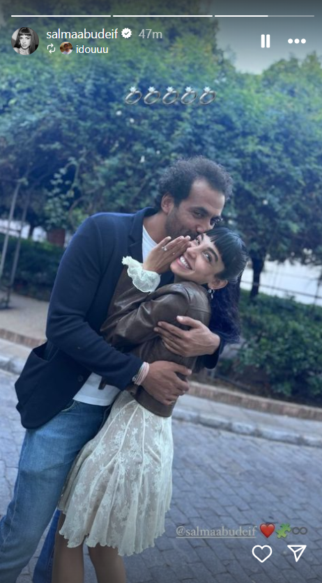 أعلنت الفنانة الشابة سلمى أبو ضيف يوم 15 مايو الماضي، خطبتها من شاب خارج الوسط الفني يُدعى إدريس عبدالعزيز، وذلك أثناء تواجدها خارج مصر، حيث نشرت مجموعة صور وفيديوهات توثق لحظة عرضه طلب الزواج منها، من خلال خاصية القصص المصور "ستوري" عبر حسابها الشخصي بموقع تبادل الصور والفيديوهات "إنستجرام".