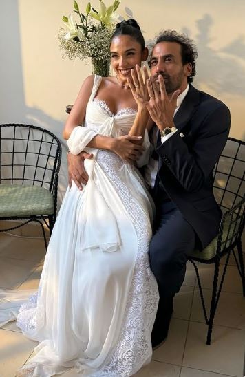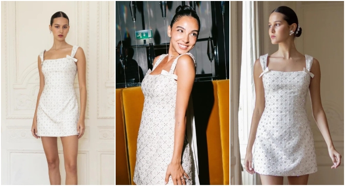 وإلى جانب فستان عقد القران، طلت سلمى أيضًا بفستان أبيض قصير ولافت أثناء احتفالها بالزفاف وسط أصدقائها ونجوم الوسط الفني، والذي جاء من تصميم نفسيكا سكورتي، وبلغ سعره 4400 دولار، ما يعادل 209927 جنيه مصري.