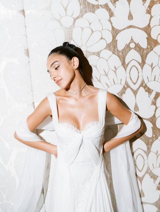 وبدت سلمى أبو ضيف بإطلالة رقيقة وناعمة، حيث ارتدت فستان أبيض ساحر، مكشوف الأكمام وذا فتحة صدر جريئة، فيما نسقت عليه شال شيفون شفاف، مما عكس أنوثتها وقوامها الممشوق، كما وضعت مكياجًا هادئًا يتناغم مع إطلالتها، كما اعتمدت تصفيفة شعر مميزة ورفعت خصلاته كعكة أنيقة أبرزت جمال ورقة ملامحها.