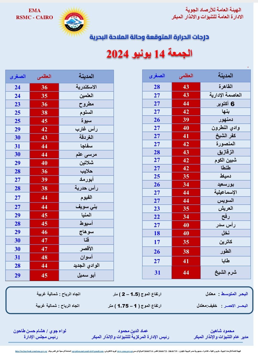 درجات الحرارة اليوم 14-6-2024