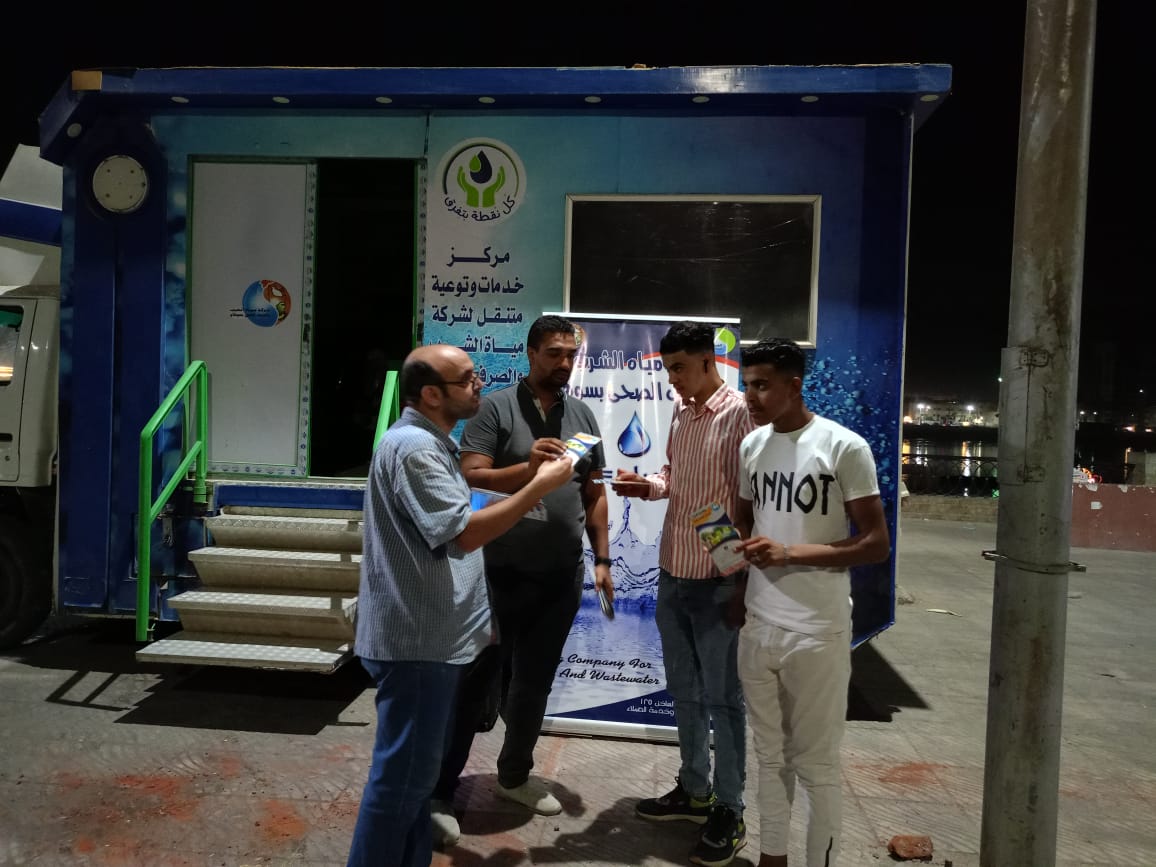 كما استهدفت الحملات التوعوية استهدفت مختلف المناطق والفئات والاعمار المختلفة لغرس المفاهيم الصحيحة والإيجابية في ثقافتهم والتوعية بالحفاظ على المياه بجانب عقد لقاءات وندوات بالجمعيات الأهلية بالمحافظه وإجراء استطلاعات رأى للمواطنين للتعرف على مدى رضائهم عن الخدمات التى تقدمها الشركة