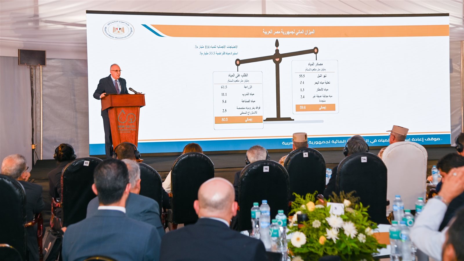 وأشار الدكتور سويلم، إلى أن موارد مصر المائية تقدر بحوالي ٥٩.٦٠ مليار متر مكعب سنوياً ( ٥٥.٥٠ مليار من مياه نهر النيل – ١.٣٠ مليار من مياه الأمطار – ٢.٤٠ مليار من المياه الجوفية العميقة الغير متجددة – ٠.٤٠ مليار من تحلية مياه البحر ) ، يقابلها إحتياجات مائية تُقدر بحوالى ١١٤ مليار متر مكعب من المياه سنوياً ، مع إستيراد محاصيل زراعية من الخارج تقابل إستهلاك مائى يُقدر بحوالي ٣٣.٥٠ مليار متر مكعب سنوياً من المياه ، مع إعادة إستخدام ٢٠.٩٠ مليار متر مكعب سنوياً من المياه ، وأنه مع الزيادة السكانية وثبات الموارد المائية المتجددة فقد تراجع نصيب الفرد لأقل من خط الفقر المائى – أقل من ١٠٠٠ متر مكعب سنوياً – إعتباراً من التسعينيات من القرن الماضى وصولاً إلى حوالى ٥٠٠ متر مكعب سنوياً في الوقت الحالي .