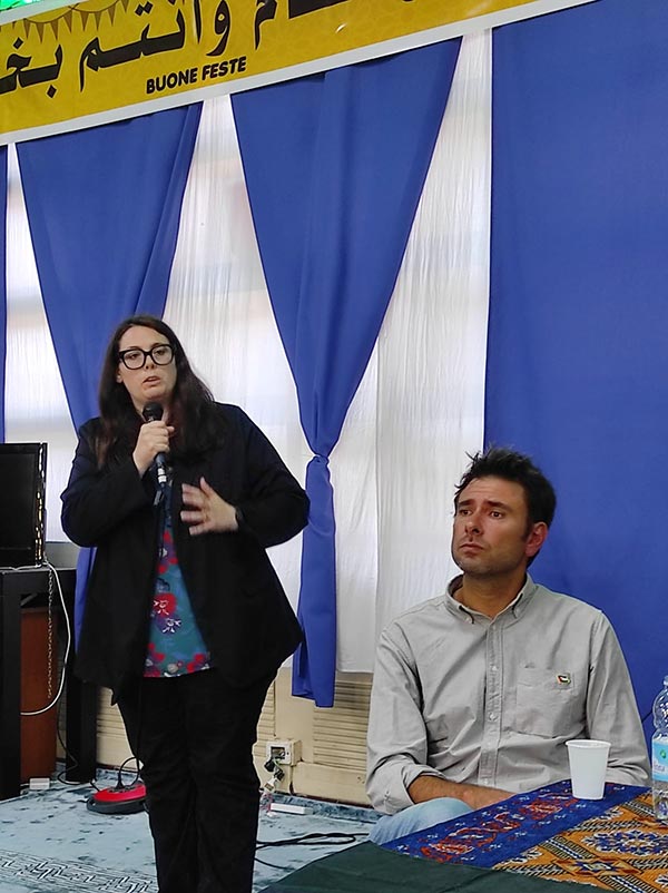بحضور عديد من الشخصيات الناشطة فى حقوق الإنسان والمناصر للقضية الفلسطينية من الإيطاليين والعرب والمسلمين, والدكتور علي حرحش المرشح السابق في البرلمان الإيطالي وهو من أصول مصريه ، وقد أدار الحوار الصحفية مجدولين شحادة وأيضا بحضور "أليساندرو دي باتيستا" الكاتب والصحفى والسياسي إلايطالي النشط حزبياً في حركة الخمس نجوم، وعضو مجلس النواب سابقاً ، و "ستيفانيا أسكاري" عضو مجلس نواب الجمهورية الإيطالية وتعمل فى مجال المحاماة النسوية، وعضو بلجان العدالة ومكافحة المافيا، وكان له دور واضح فى عمل وقفة تضامنية احتجاجية يوم/ الثلاثاء 5 مارس، أمام معبر رفح البري في شمال سيناء مع وفد إيطالي رفيع المستوى من حركة الخمس نجوم في البرلمان الإيطالي وأساتذة جامعيين وأطباء بدون حدود وإعلاميين وبعض المؤسسات الإنسانية، وقام بتفقد المخازن اللوجستية الخاصة بتخزين المساعدات الخاصة بقطاع غزة في مدينة العريش، وقام بعمل وقفة تضامنية بوقف فوري لإطلاق النيران في قطاع غزة وإيصال كميات أكبر من المساعدات الإغاثية والإنسانية إلى المواطنين في قطاع غزة واستئناف المفاوضات الدبلوماسية والسلام بقيادة الأمم المتحدة، وممثلى بعض الطلاب الجامعيين الذين يقومون بمظاهرات التأييد المستمرة بأنحاء ايطاليا لإيقاف نزيف الدم للشعب الفلسطيني.