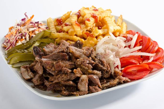 10. قدمي الشاورما اللذيذة والساخنة مع المخلل والسلطات.