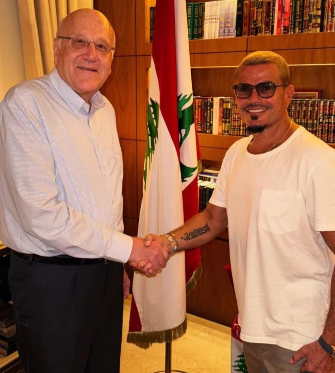 استقبل رئيس الوزراء اللبناني نجيب ميقاتي الفنان عمرو دياب قبل إقامة حفله بالعاصمة بيروت.