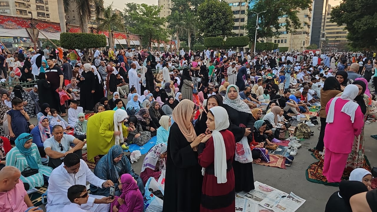وافترش المواطنون شارع جامعة الدول العربية، لآداء صلاة العيد، وسط أجواء من الفرحة والسعادة.