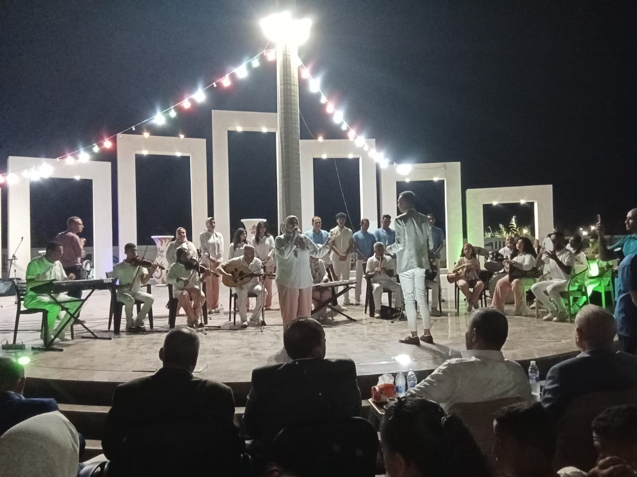 وشهد الحفل تقديم باقة غنائية من الأغاني الوطنية المتنوعة لفرقة قصر ثقافة الأنفوشي للموسيقى العربية، بقيادة الفنان هيثم بسيوني، أعقبها عرض فني لفرقة فنون شعبية أطفال قصر ثقافة الطور، وسط تفاعل الحضور، كما تضمن الحفل فقرة شعرية للموهوب علي حسن.