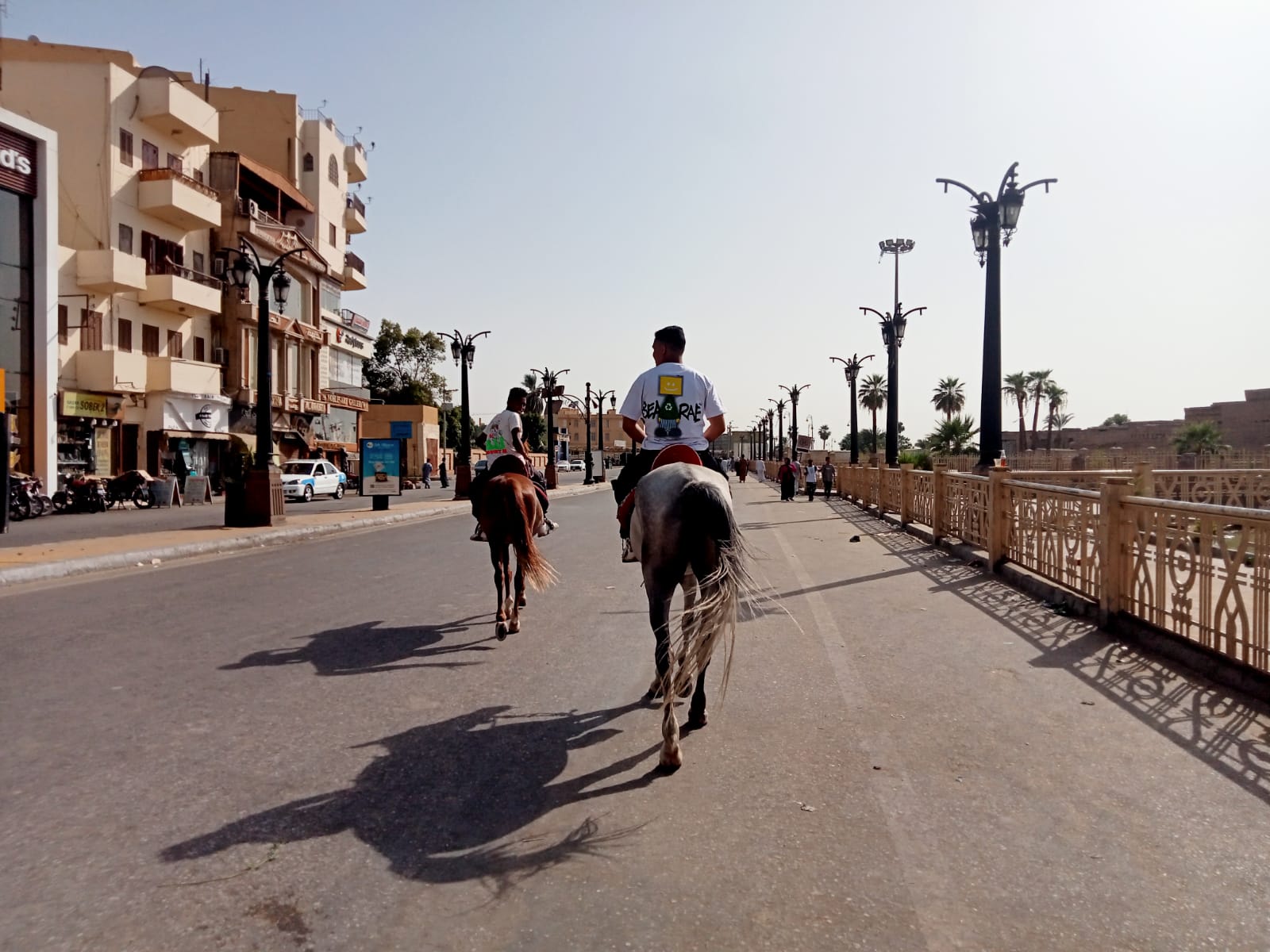 في وسط شارع المحطة بمدينة الأقصر، وساحة ابو الحجاج بقلب المدينة، تنتشر الخيول وقد استقلها الأطفال للتجول بشوارع مدينة الشمس، مقابل ثلاثين جنيها للساعة.