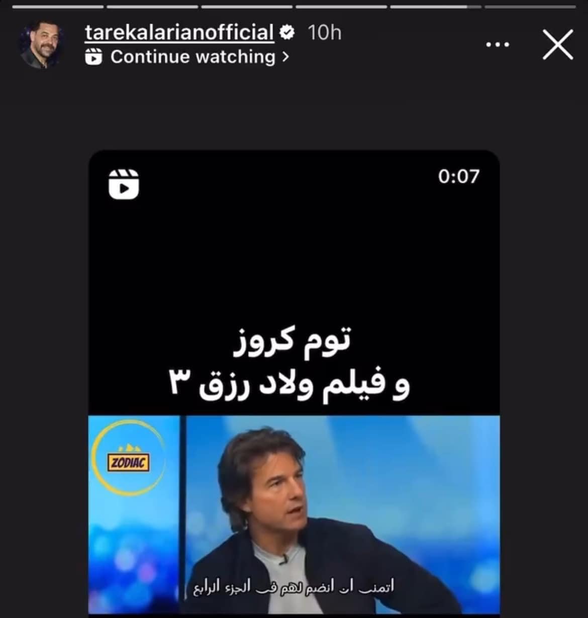 ظهر توم كروز في الفيديو المتداول وهو يتحدث عن النجاح الضخم الذي حققه فيلم ولاد رزق 3 "القاضية"، معربًا عن أمنيته في المشاركة في الجزء الرابع منه، حيث قال: "أشعر أنني فقدت فرصة عظيمة بأن أكون جزءًا من هذا العمل الرائع ولاد رزق 3".