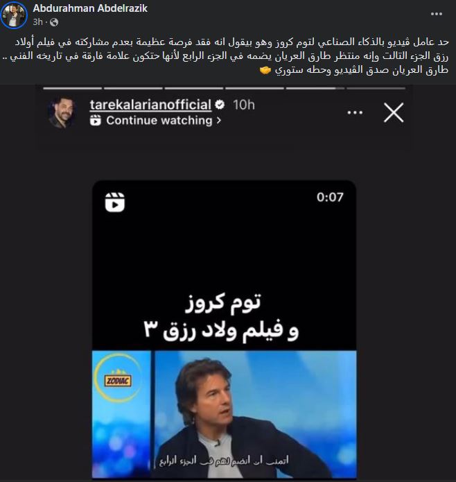 - حقيقة رغبة توم كروز في المشاركة بفيلم ولاد رزق 4