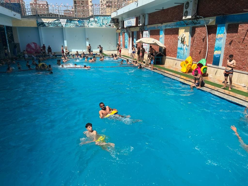 حمامات السباحة تجذب الشباب في رابع أيام عيد الأضحى بمغاغة