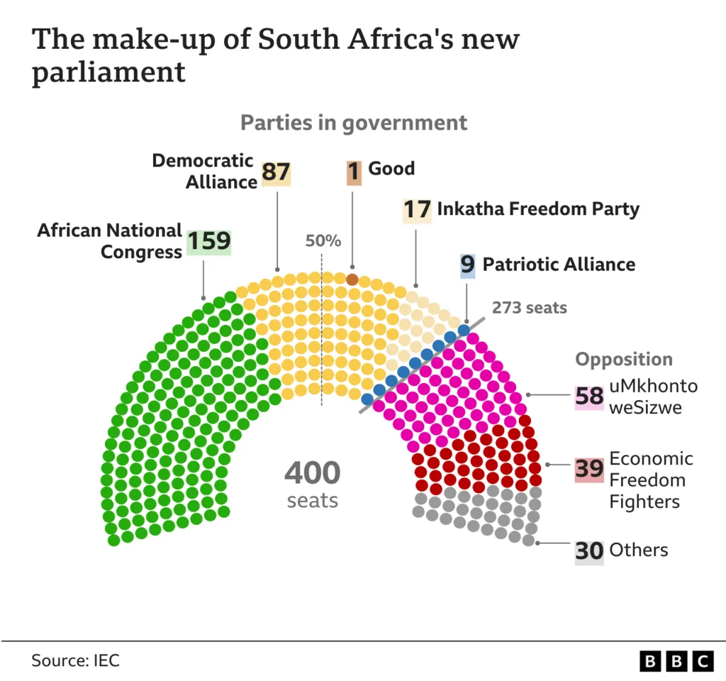 فشل حزب المؤتمر الوطني الأفريقي في الفوز بأغلبية في انتخابات الشهر الماضي للمرة الأولى منذ نهاية نظام الفصل العنصري في عام 1994.