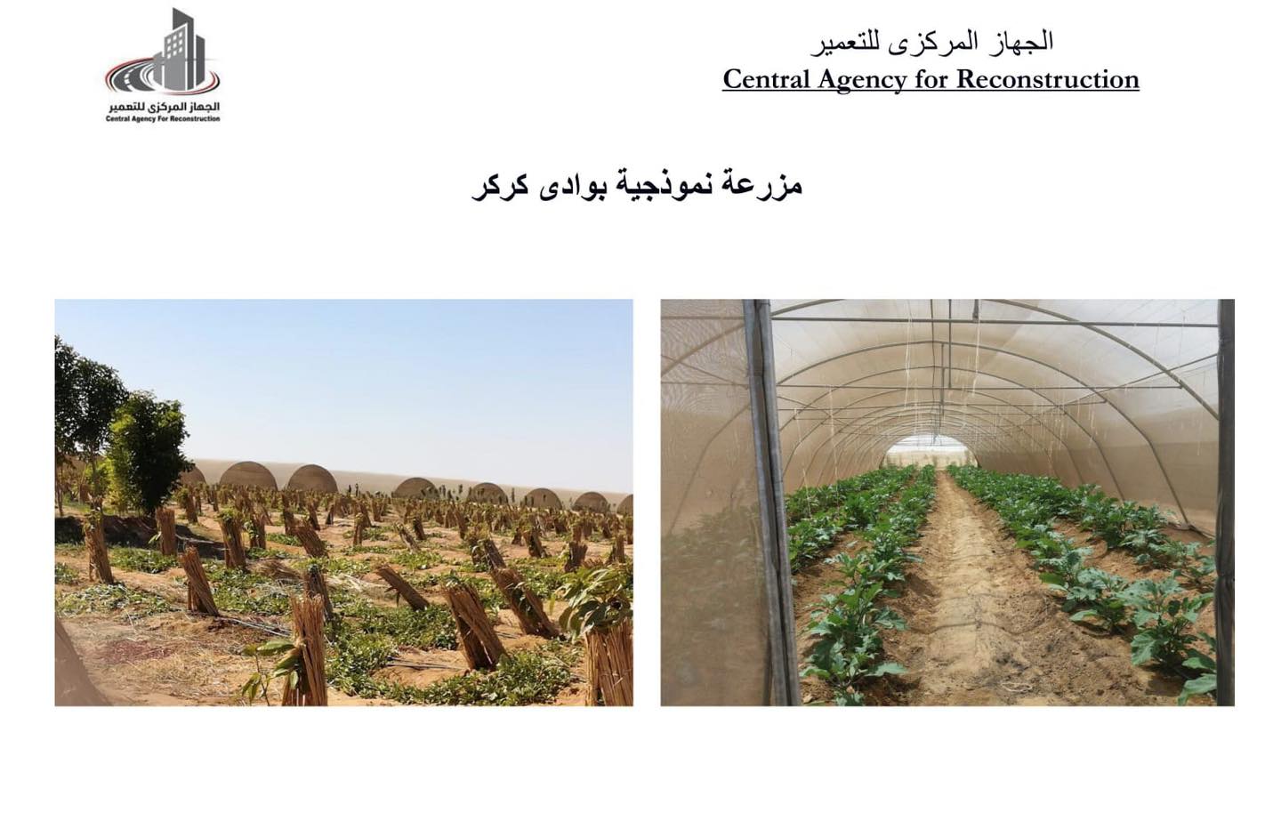وأشار اللواء محمود نصار، رئيس الجهاز المركزي للتعمير، إلى أن جهاز تعمير جنوب الصعيد انتهى من تنفيذ المراحل (1 - 2 - 3) من مشروع تسكين أهالى النوبة بوادي كركر، من خلال إنشاء ألف بيت نوبي شاملة المرافق، بجانب تنفيذ المشروعات التنموية للمساهمة فى ربط المنطقة بالطرق والمدن الرئيسية وإنعاش الحركة التجارية وتوفير فرص عمل للأهالي، وتشمل (إنشاء محطة للخدمة الإقليمية بمنطقة وادى كركر وبها مواقف للسيارات بأنواعها – موتيل ومسجد ومحال تجارية – مزرعة نموذجية بوادي كركر بمساحة 100 فدان، وتتكون من 165 صوبة زراعية، ونخيل وأشجار فاكهة).