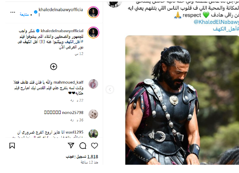 وكتب خالد النبوي، عبر حسابه، قائلًا: "شكر واجب للجمهور والصحفيين والنقاد الذين يشاهدون فيلم أهل الكهف ويكتبون عنه. أهل الكهف في دور العرض الآن".