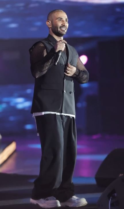 وبرر ارتداء "الشبك" الشفاف، قال: إن الاستايليستات أحضر له الجاكت الشبكة، وكان معاه "جيبة" لكنه رفض ارتداءها بل ارتدى الشبك فقط، وبعدها كان سعيدًا بالنقد الذي وُجه إليه على هذه الإطلاله، لأنه يعتبر الجمهور أحد أبنائه.