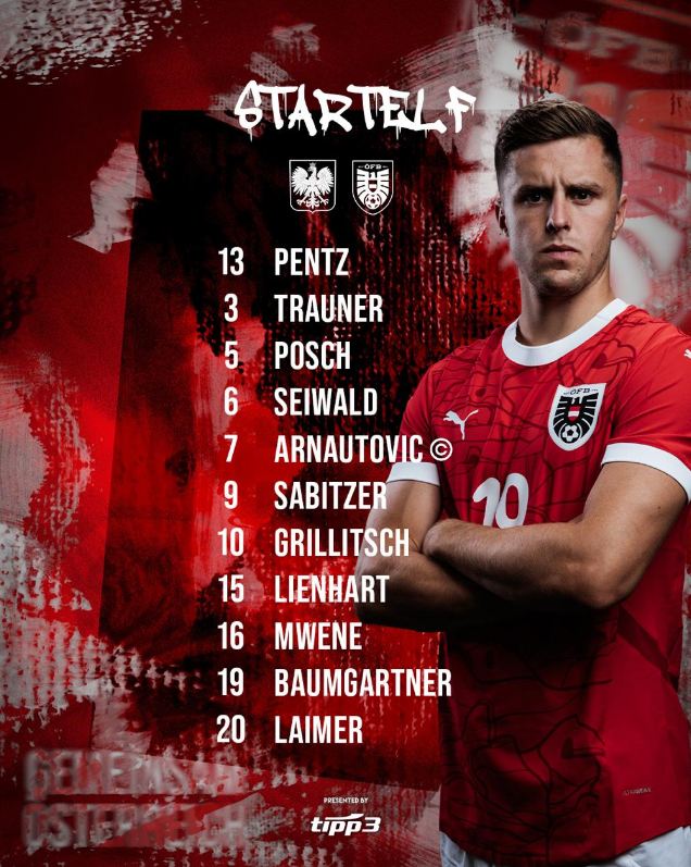 تشكيل منتخب النمسا ضد بولندا في أمم أوروبا