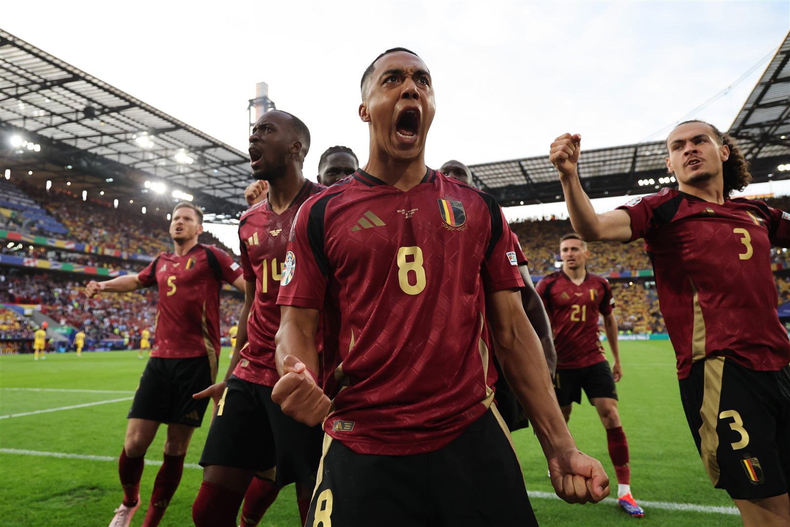 وكان منتخب بلجيكا خسر في مباراته الأولى أمام سلوفاكيا، لتذيل المجموعة دون نقاط، بينما فاز منتخب رومانيا بنتيجة كبيرة على أوكرانيا بثلاث أهداف نظيفة، ليعتلي المجموعة الخامسة.