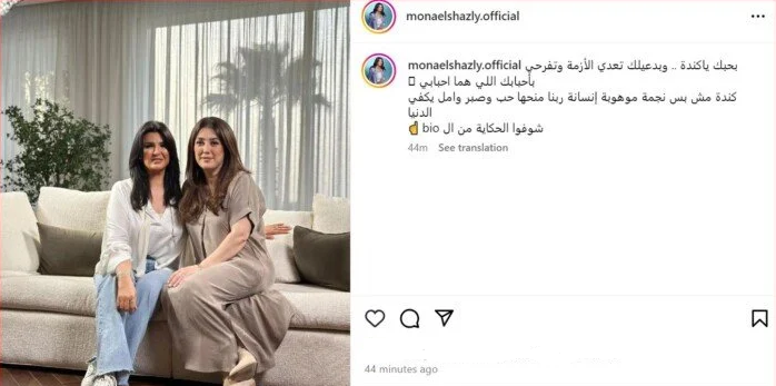 دعمت الإعلامية منى الشاذلي، الفنانة كندة علوش بعد كشفها عن إصابتها بمرض سرطان الثدي، وذلك عبر حسابها الرسمي على موقع تبادل الصور والفيديوهات الشهير إنستجرام.