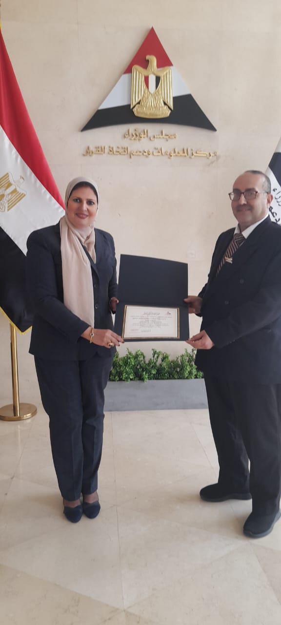 وكرم مركز المعلومات بمجلس الوزراء مروة منصور مدير عام مركز المعلومات ودعم اتخاذ القرار التابع لرئاسة مجلس الوزراء بديوان عام محافظه البحيرة، بشهادة تقدير للحصول على المركز الثالث فى محور أفضل مراكز المعلومات / إدارات التحول الرقمى بالمحافظات عام ٢٠٢٣.