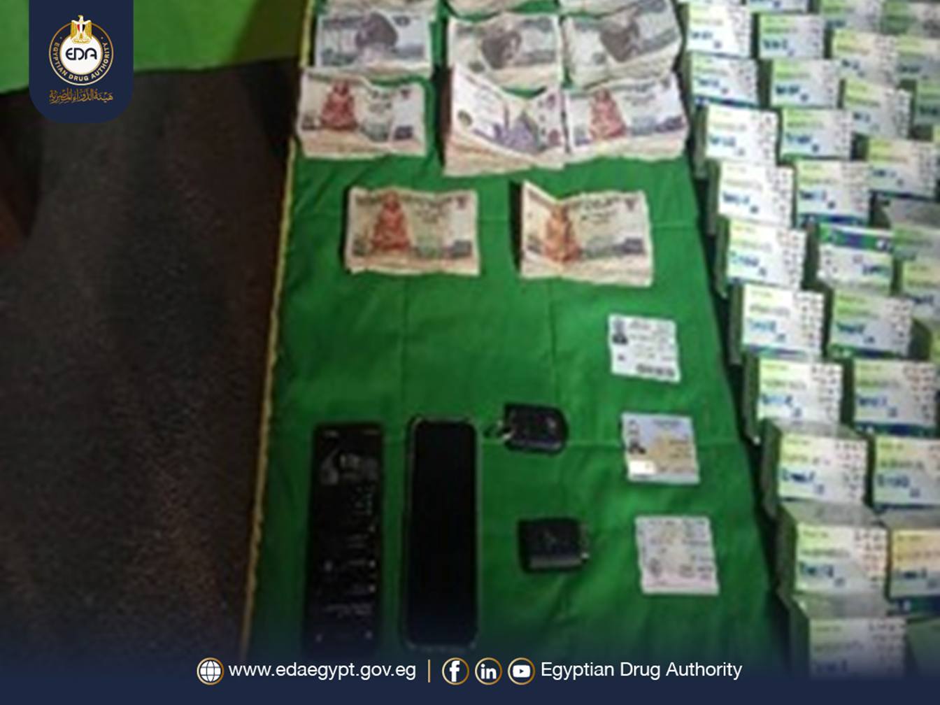 تمكنت هيئة الدواء المصرية بنطاق منطقة المرج بمحافظة القاهرة، وبالتنسيق مع الإدارة العامة لمكافحة المخدرات من مداهمة مخزن توزيع أدوية غير مرخص، يقوم بتوزيع وترويج المواد المخدرة.