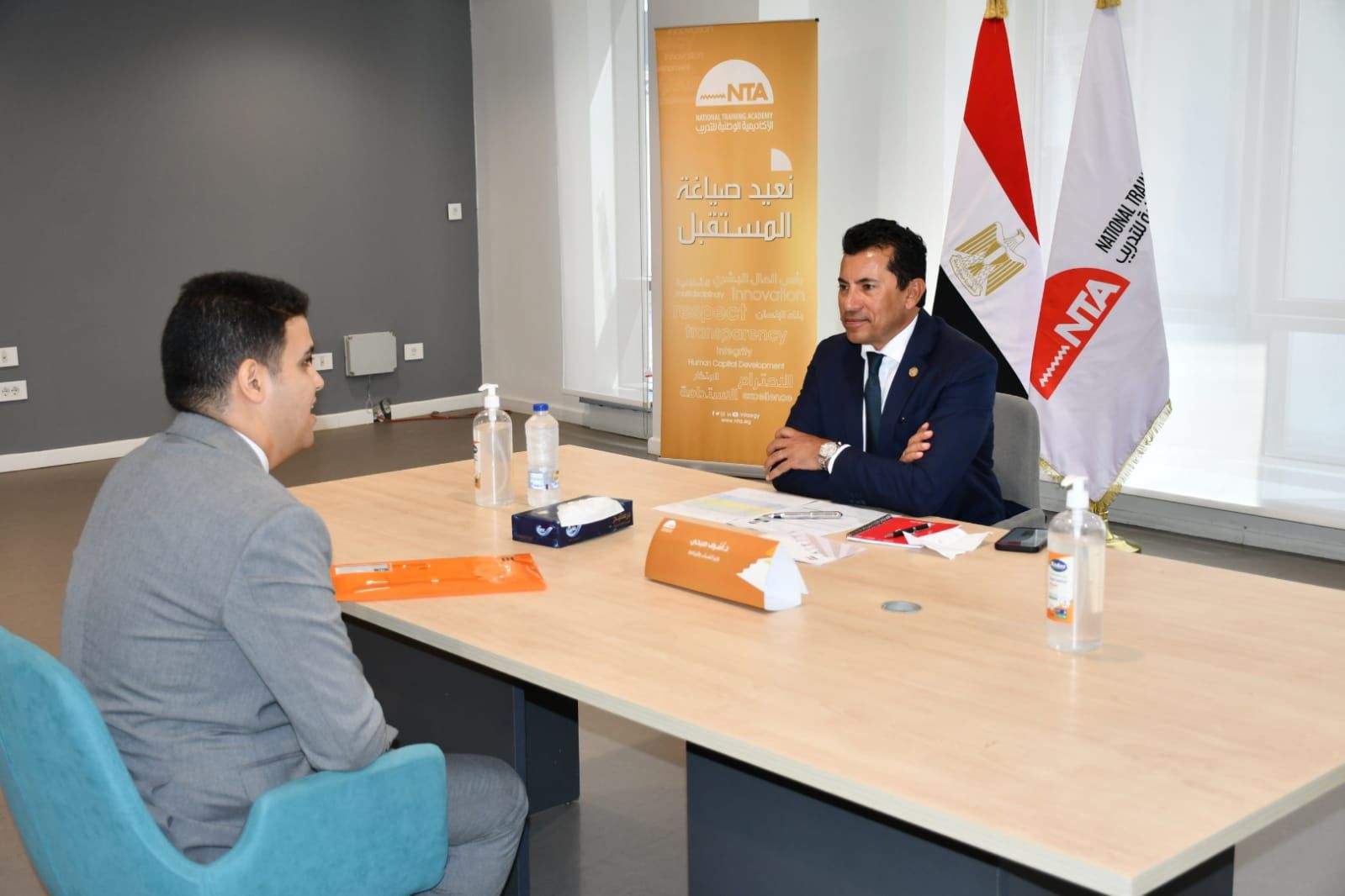 شهد الدكتور أشرف صبحي، وزير الشباب والرياضة، اختيارات الشباب المتقدمين للدفعة الخامسة من البرنامج الرئاسي لتأهيل الشباب للقيادة بالأكاديمية الوطنية للتدريب.