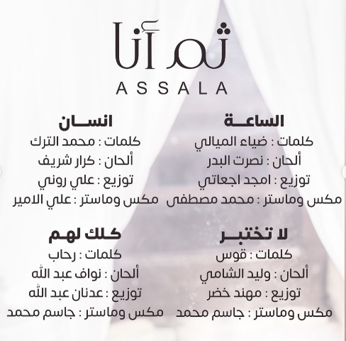 أغنية الساعة من كلمات ضياء الميالي، ألحان نصرت البدر، توزيع أمجد أجعاتي.