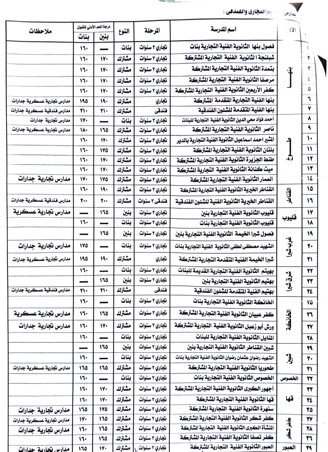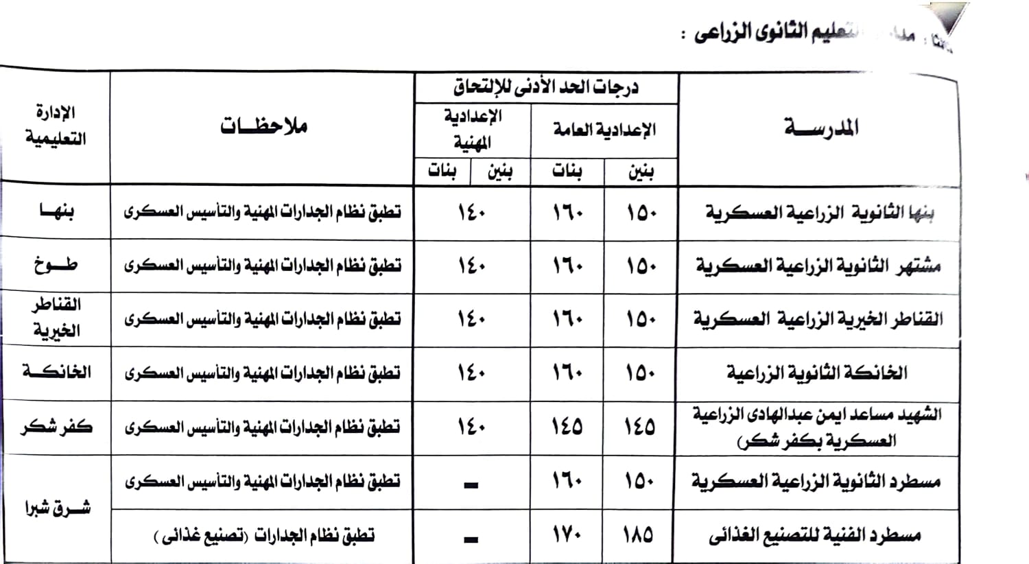 محافظ القليوبية يعتمد تنسيق المرحلة الأولي للقبول بالمدارس الثانوية الفنية