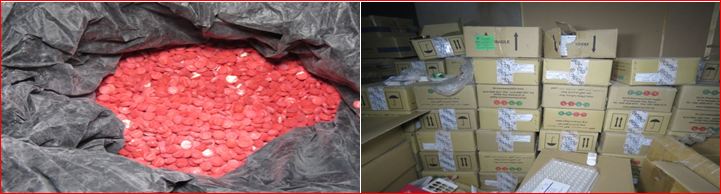 عقب تقنين الإجراءات بالتنسيق مع قطاع الأمن العام تم إستهدافهم وضبطهم،وبحوزتهم (كمية لمسحوق بودرة الترامادول المخدر وزنت 600 كيلو جرام – 4 مليون قرص مخدر –11580 قرص مؤثر 841 أمبول مخدر –عدد من المعدات والأدوات المستخدمة فى التصنيع)وبمواجهتهم إعترفوا بحيازتهم للمضبوطات بقصد تصنيع العقاقير المخدرة والإتجار بها.
