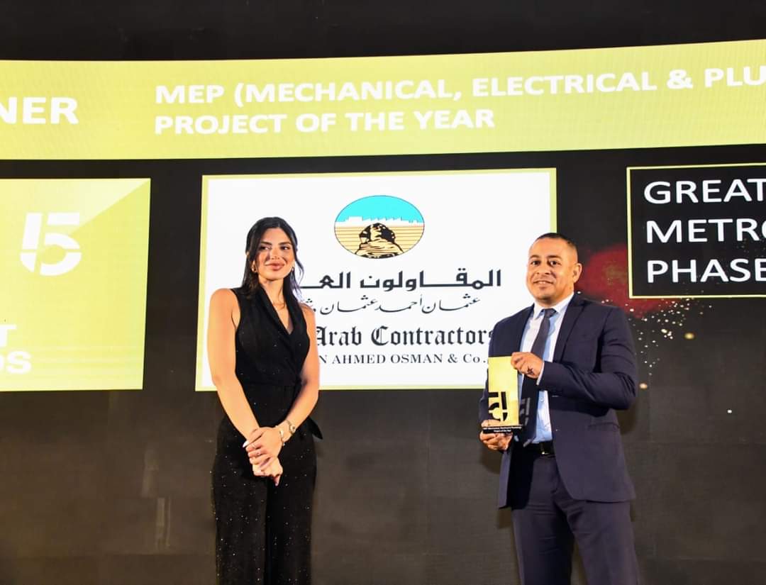 كما حصل مشروع مترو الأنفاق- المرحلة الثالثة بالخط الثالث والذي تم تنفيذه تحت إشراف وزارة النقل(الهيئة القومية للأنفاق) والذي نال جائزة العام في فئة المشروعات الكهروميكانيكية (MEP Project of The Year)، و الذي تم افتتاحه مؤخراً، و أثنت عليه لجنة التحكيم لما يمثله من انجازا بارزا في تطوير البنية التحتية وتخفيف حدة الازدحام المروري بكل من القاهرة والجيزة، بالإضافة إلى ما تضمنه المشروع من تحديات تمكنت شركة المقاولون العرب من اجتيازها بنجاح والتي تمثلت في تعقيد وصعوبة العمل في نطاق المشروع الكبير والذي يمتد على طول 17.7 كم وفي مناطق مكتظة بالكثافة السكانية والمرافق الحيوية المحيطة بمواقع العمل، تسلم الجائزة المهندس عبد العزيز أحمد مدير المرحلة الثالثة بالمشروع.