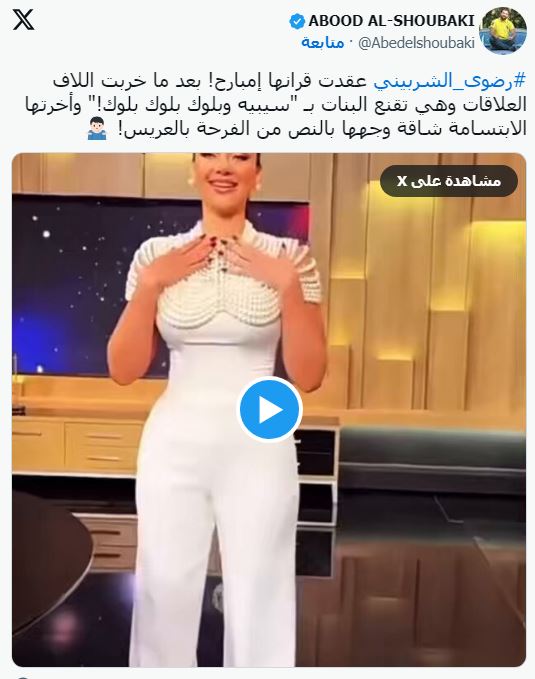 وفي سياق منفصل، نفت صديقة مقربة للإعلامية رضوى الشربيني أنباء زواجها المتداولة، مؤكدة إن ما حدث في الفيديو المتداول لها داخل الاستوديو ليس إلا مزحة بينها وبين صديقاتها، مشيرة إلى أن ارتدائها للون الأبيض أيضًا ساهم في انتشار الخبر على نطاق واسع.