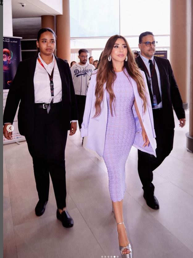 وبدت نجوى كرم بإطلالة عصرية، تمزج بين البساطة والأناقة في آن واحد، مواكبة لأحدث صيحات الموضة لهذا العام، حيث ارتدت فستان مجسم ميدي صمم من قماش ناعم بريش القصير ونسقت عليه جاكيت قصير باللون اللافندر، فيما انتعلت صندلًا بكعب عال باللون الفضي.
