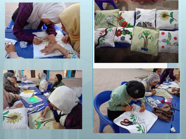 جاء ذلك من خلال تنفيذ ورش عمل تدريبية للشباب والفتيات بمختلف أعمارهم السنية وخاصه الفتيات والمرأة المعيلة لفتح آفاق جديدة لهم للعمل وتعلم حرفه يستطيعون من خلالها رفع مستوى معيشتهم.