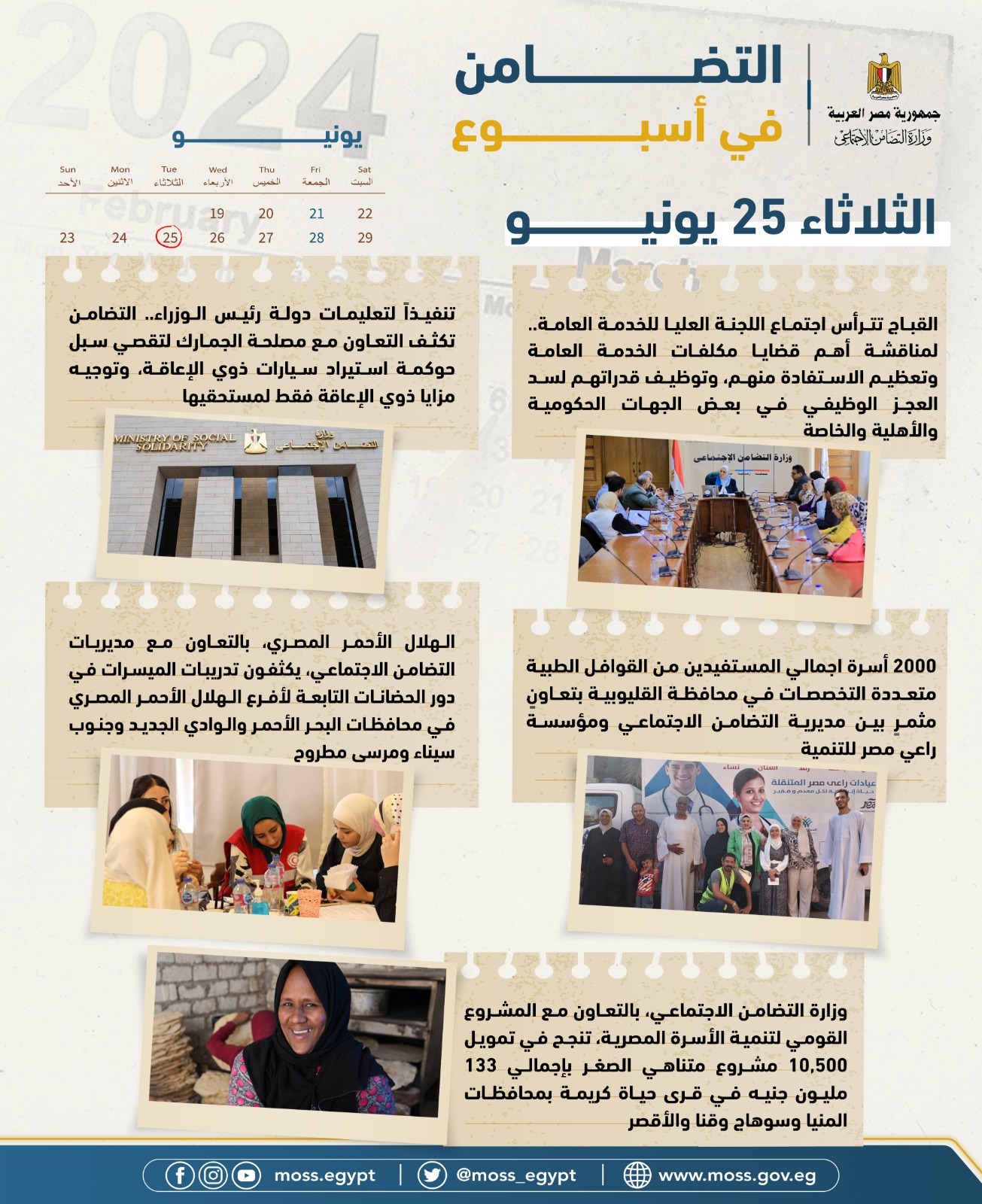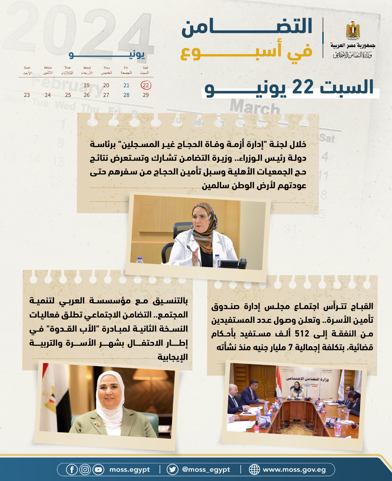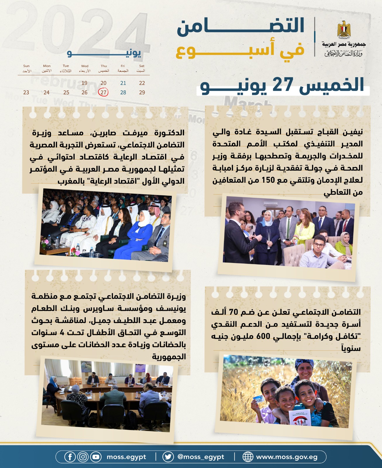 الحصاد الأسبوعي لرصد أنشطة وزارة التضامن من 21 لـ 27 يونيو 2024