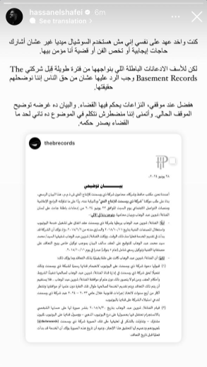 واستكمل المحلن المعروف: لكن للأسف الادعائات الباطلة اللي بنواجهها من فترة طويلة قبل شركتي The Basement Records وجب الرد عليها عشان من حق الناس إننا نوضحلهم حقيقتها.