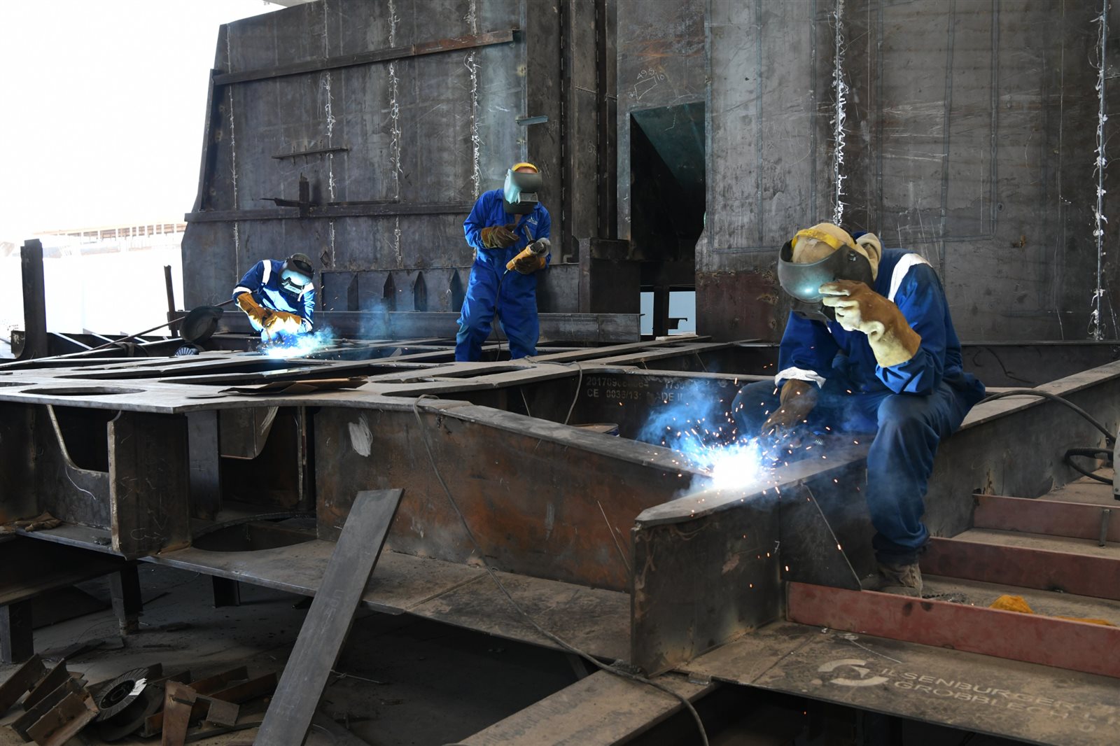وأشار رئيس مجلس إدارة شركة ترسانة جنوب البحر إلى  انتهاء أعمال بناء بدن القاطرة "عزم ١"، وقرب انتهاء أعمال بناء بدن القاطرة الثانية "عزم ٢" التي بلغت نسبة إنجازه  ٨٥٪، ومن المقرر تدشين القاطرتين شهر ديسمبر المقبل بمشيئة الله، فيما وصلت نسبة إنجاز بدن القاطرتين "عزم ٣" و"عزم ٤" إلى ٣٠٪ ، و٢٠٪ على التوالي، ويجري العمل على  تصنيع خطوط المواسير وأعمال التشطيبات الداخلية طبقًا للرسومات الهندسية المعدة.