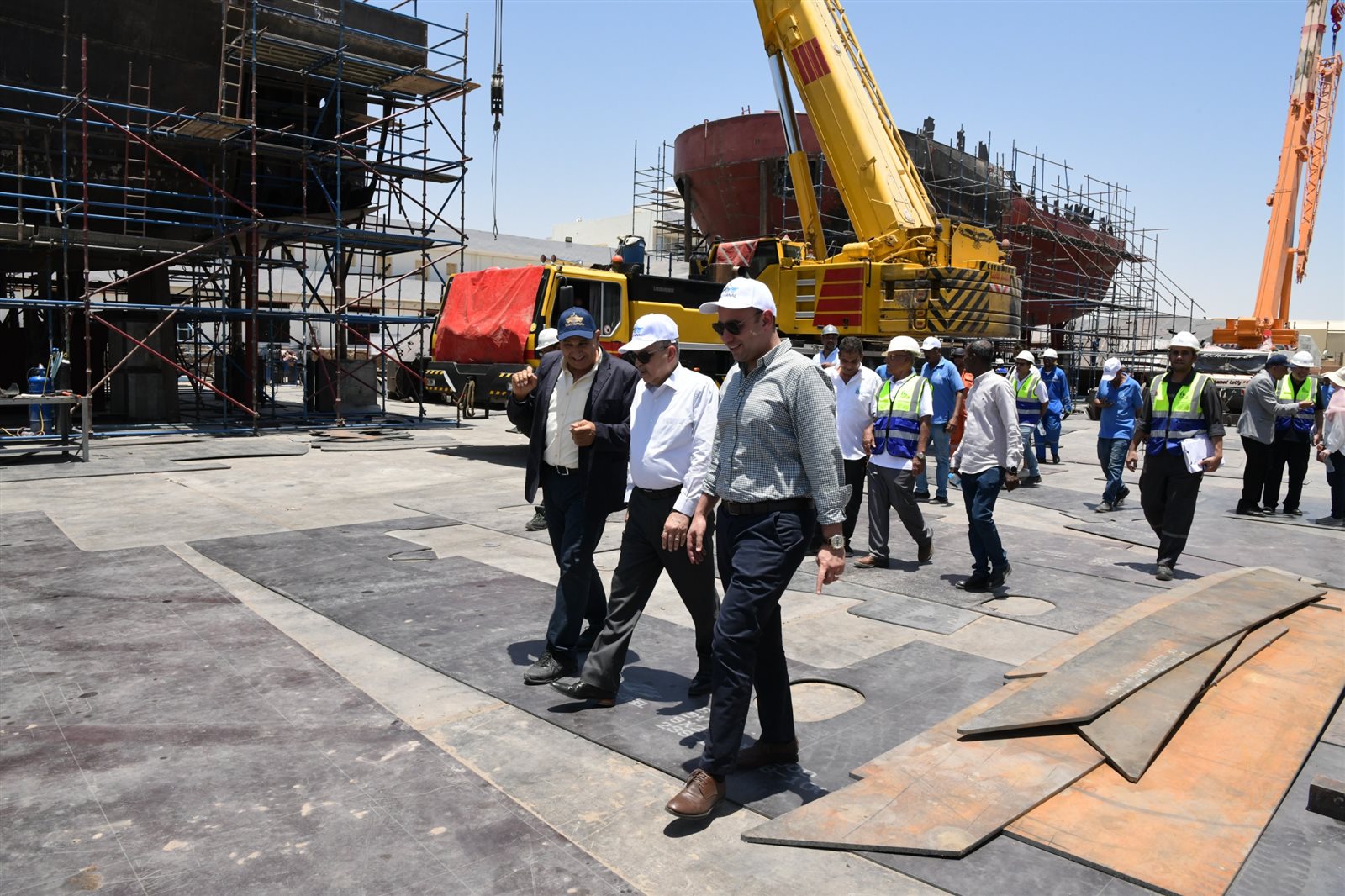 شملت الجولة التفقدية، الأعمال الجارية بالقطاعات الثلاثة الرئيسية بمصنع مصر لبناء القاطرات، وهى قطاع التقطيع، وقطاع التشكيل، وقطاع البناء، والمجهزة بالتكنولوجيا الأحدث عالميًا في مجال بناء الوحدات البحرية المختلفة.