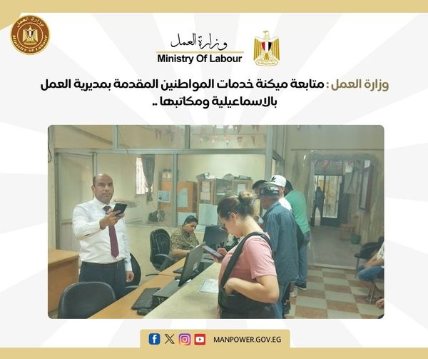 وزارة العمل تتابع ميكنة خدمات المواطنين المقدمة بمديرية الإسماعيلية