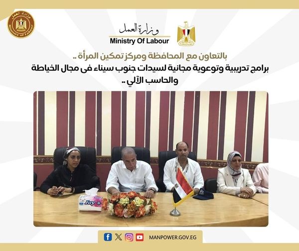 وزارة العمل تنظم برامج تدريبية وتوعوية مجانية لسيدات جنوب سيناء