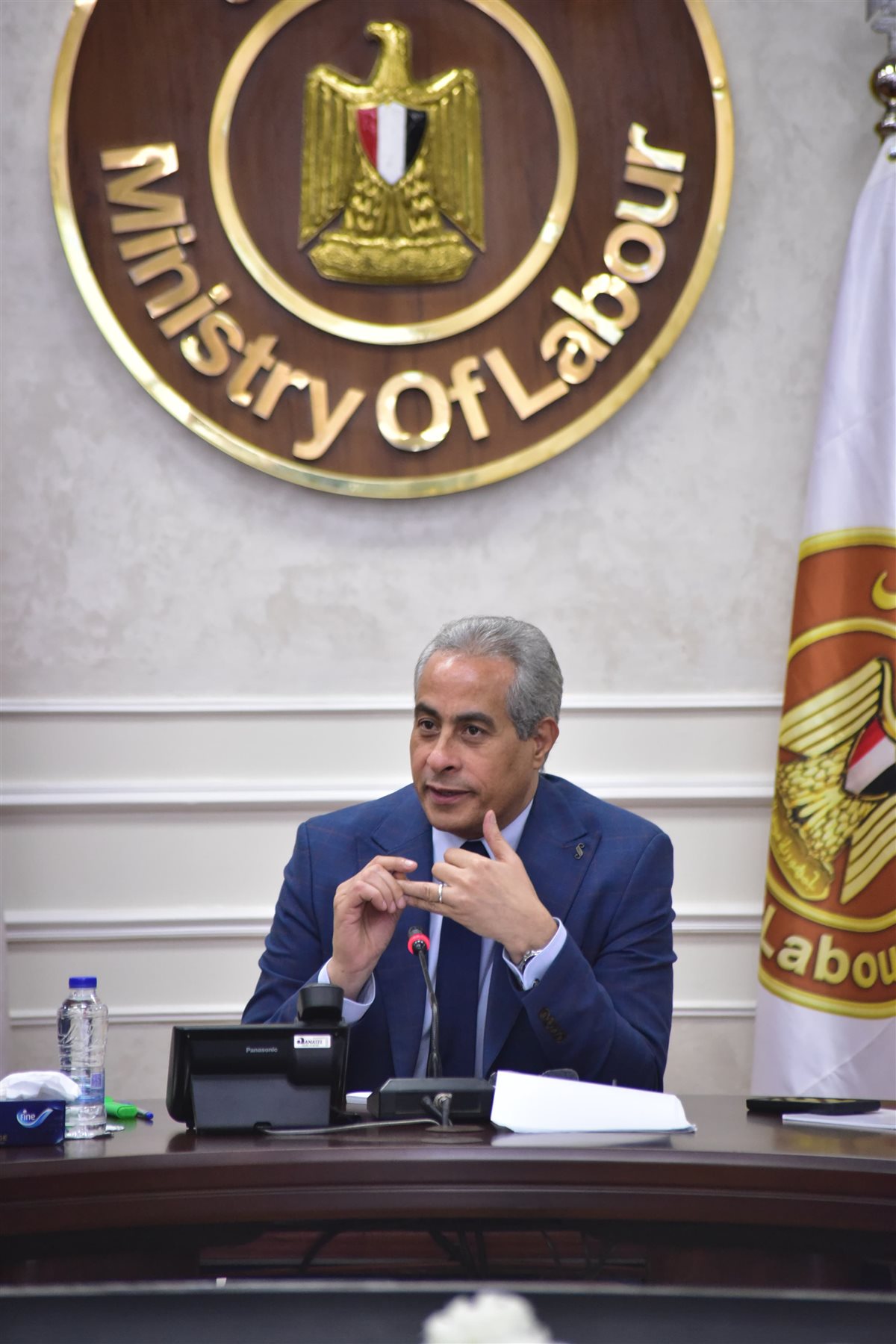 وكذلك طرح كشروع قانون العمل على "الحوار الإجتماعي" لسُرعة إصدار تشريع يحقق المزيد من الأمان الوظيفي للعامل ،ويُشجع على الإستثمار المحلي والأجنبي،وكذلك الحريات النقابية.