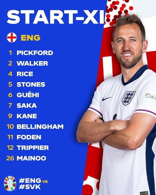 أعلن جاريث ساوثجيت المدير الفني لمنتخب إنجلترا تشكيل الأسود الثلاثة لمباراة سلوفاكيا مساء اليوم الأحد، في دور الـستة عشر من بطولة كأس أمم أوروبا، والتي تستضيفها ألمانيا.