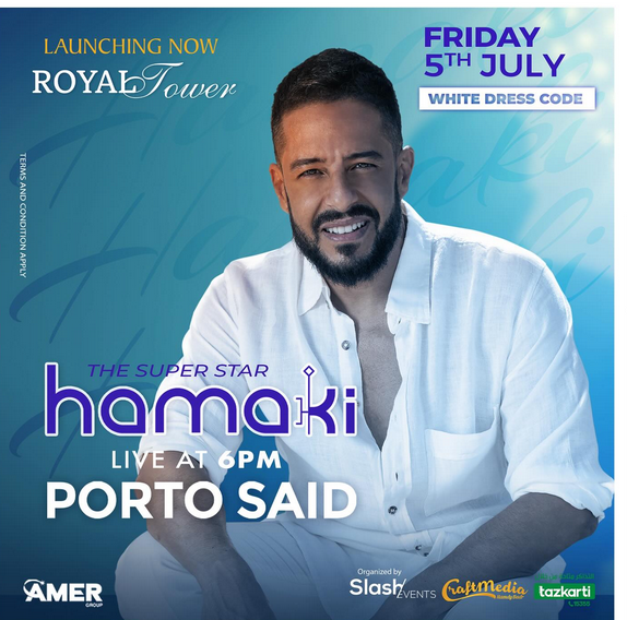 يقام حفل حماقي في الخامس من يوليو احتفالاً بافتتاح أحد المشاريع الجديدة في بورتو سعيد، وتم طرح التذاكر عبر الموقع الالكتروني الخاص بها.